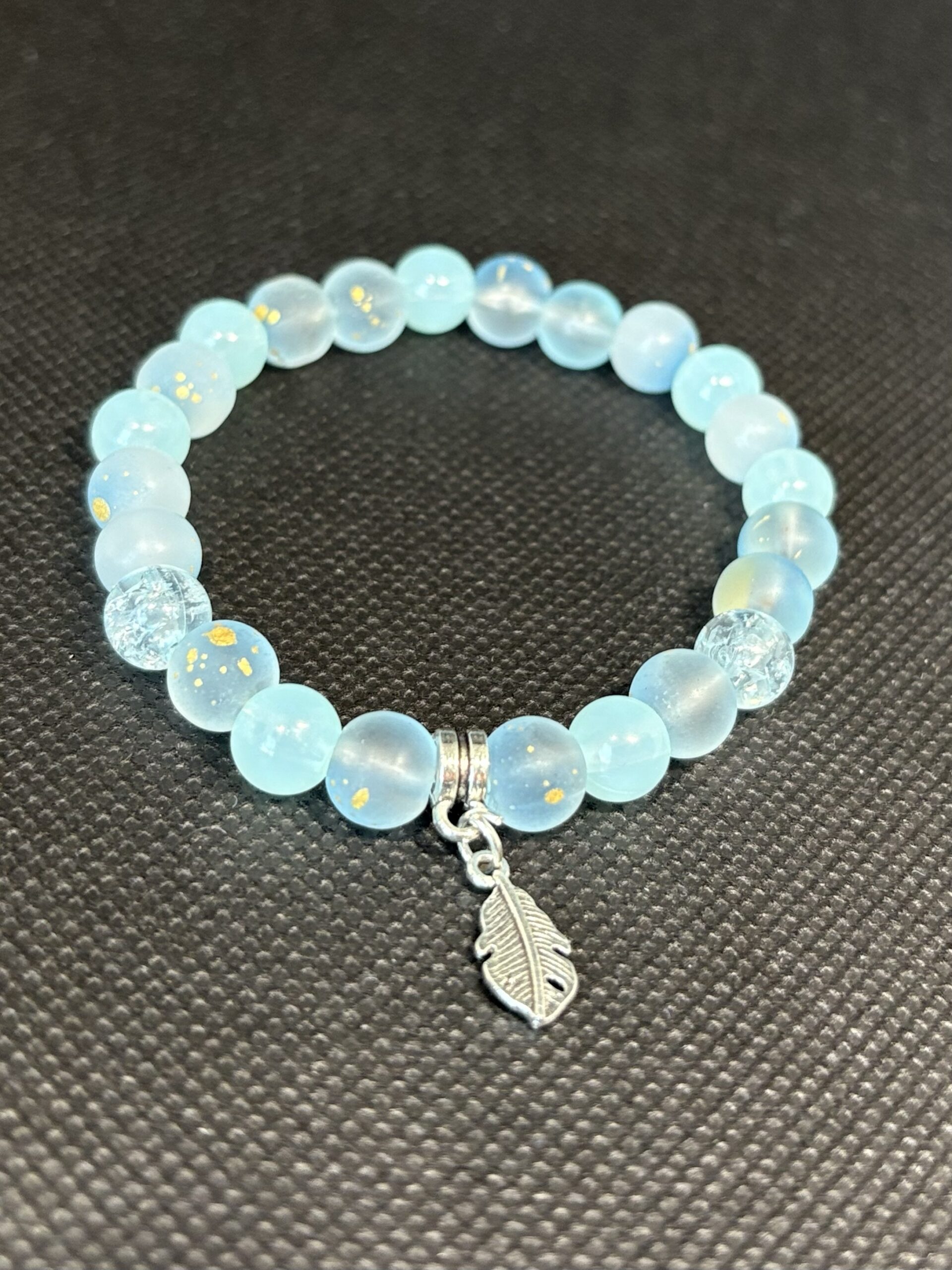 náramek navlečený na pevné elastické šňůrce