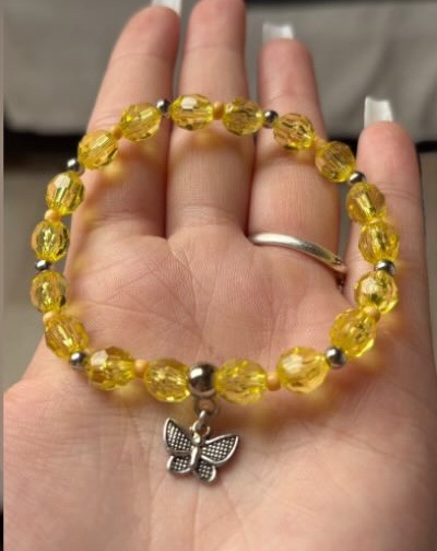 náramek z jemně zářivých korálků, doplněný o symbol motýla, který přináší lehkost, radost a svobodu do každého dne